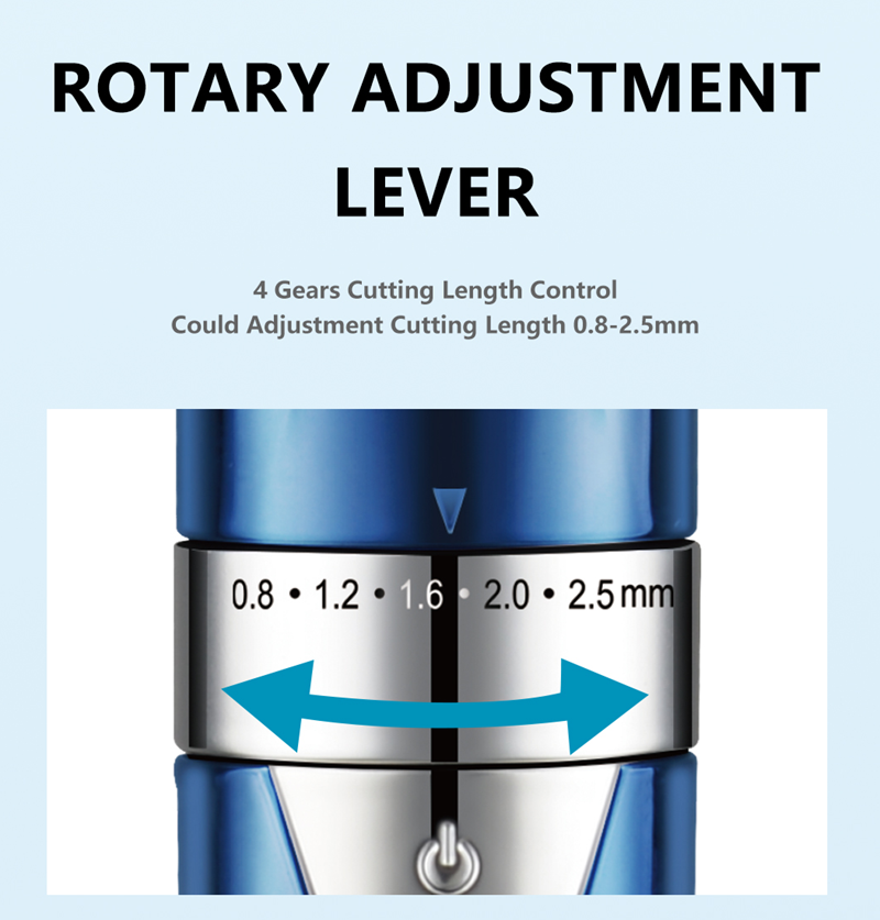 2. Special precision dial Adjustable five cutting length from 0.8-2.5mm