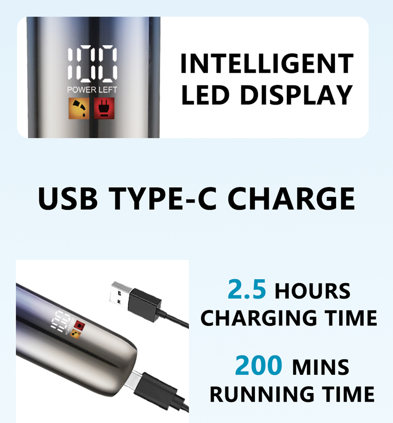 1. HTC Special High Carbon steel T-Blade 2. Special precision dial Adjustable five cutting length from 0.8-2.5mm 3. Lithium Battery 2000 mAH,1.8 hours fast charging...